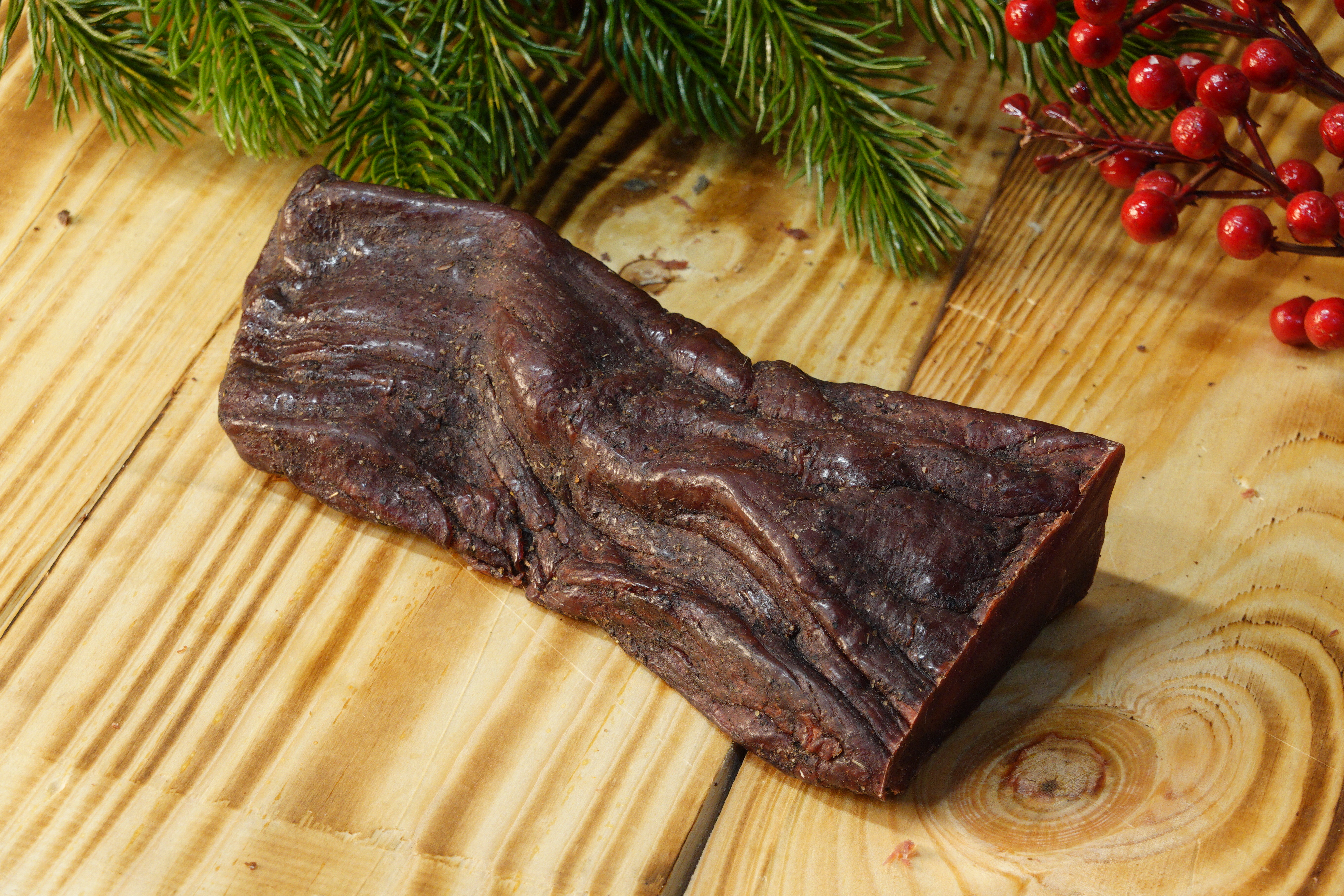 Конина сырокопченая изготовлена из лучших кусков вырезки домашнего животного. Мускатный орешек, черный молотый перец, можжевельник, кардамон, совсем немного шафрана и морской соли – естественные усилители вкусового букета непосредственно самого продукта. Конина быстро усваивается человеческим организмом – потребуется всего 3 часа. Говядина, к примеру, переваривается в течении суток. Постоянное употребление продукта – гарантия снижения уровня холестерина, нормализация функционирования ЖКТ.